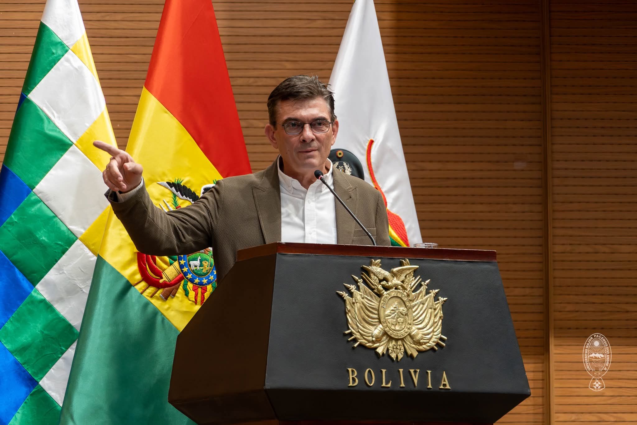 🗣️ El evento contó con la participación del Presidente Rodrigo Paz Pereira y el Ministro de la Presidencia, José Luis Lupo Flores, quienes resaltaron que una academia fortalecida es garantía de un mejor futuro. Asimismo, participaron los rectores de la USFX, UAGRM, UAJMS, UAB y UCB, reafirmando el compromiso de trabajar articuladamente por la innovación tecnológica.